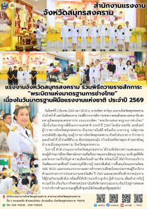 แรงงานจังหวัดสมุทรสงคราม ร่วมพิธีถวายราชสักการะ “พระบิดาแห่งมาตรฐานการช่างไทย” เนื่องในวันมาตรฐานฝีมือแรงงานแห่งชาติ ประจำปี 2569