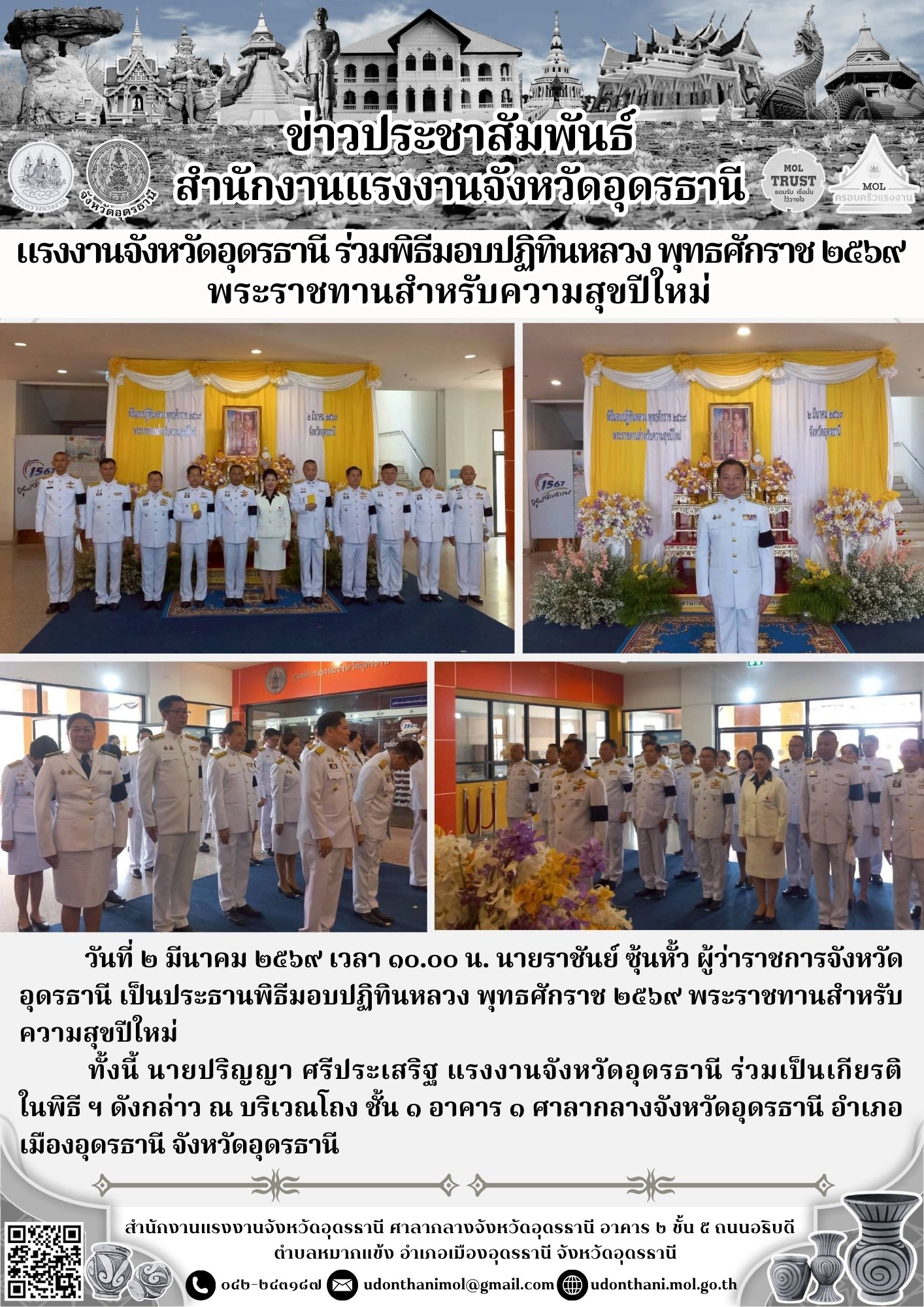 แรงงานจังหวัดอุดรธานี ร่วมพิธีมอบปฏิทินหลวง พุทธศักราช ๒๕๖๙ พระราชทานสำหรับความสุขปีใหม่