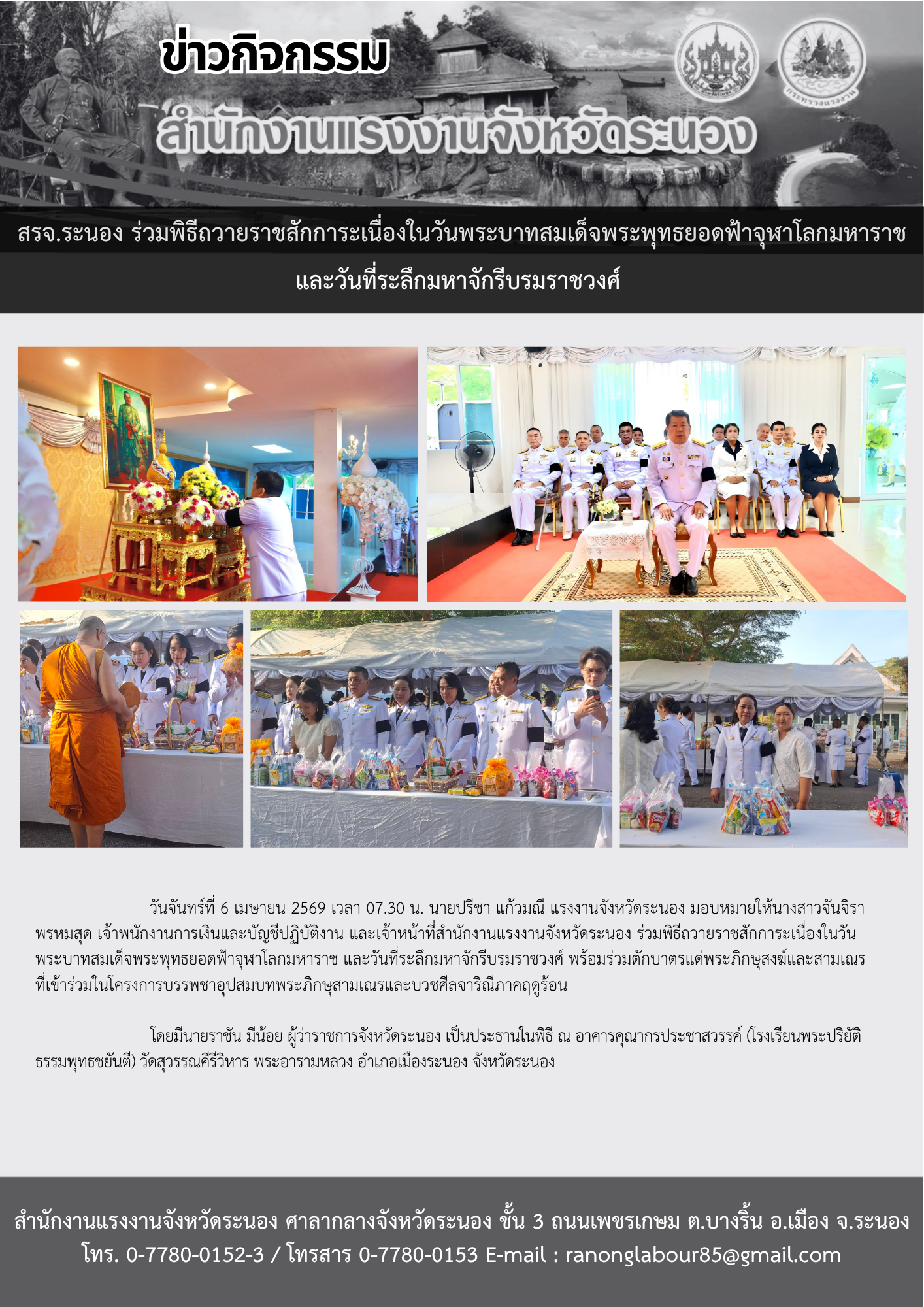 สรจ.พังงา ร่วมพิธีวันพระบาทสมเด็จพระพุทธยอดฟ้าจุฬาโลกมหาราช และวันที่ระลึกมหาจักรีบรมราชวงศ์