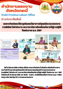 สรจ.กระบี่ เข้าร่วมประชุมรับมอบนโยบายจากรัฐมนตรีกระทรวงแรงงาน นายพิพัฒน์ รัชกิจประการ และการหารือการขับเคลื่อนนโยบายไปสู่การปฏิบัติ ปีงบประมาณ พ.ศ. 2567