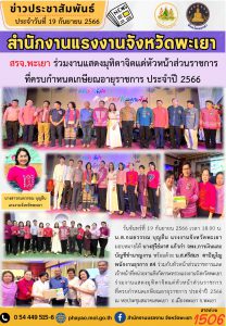 สรจ.พะเยา รับมอบใบประกาศอาสาสมัครแรงงานดีเด่นระดับจังหวัดและการสัมมนาเครือข่ายแรงงานเพื่อเพิ่มประสิทธิภาพในการขับเคลื่อนภารกิจสำคัญของกระทรวงแรงงาน ไปสู่ประชาชนในพื้นที่