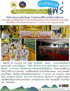 สรจ.แพร่ ร่วมประกอบพิธีถวายเครื่องราชสักการะ วางพานพุ่ม และพิธีจุดเทียนถวายพระพรชัยมงคลแด่ พระบาทสมเด็จพระเจ้าอยู่หัว เนื่องในโอกาสวันเฉลิมพระชนมพรรษา 71 พรรษา 28 กรกฎาคม 2566