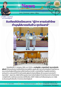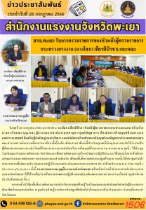 สรจ.พะเยา รับการตรวจราชการของหัวหน้าผู้ตรวจราชการกระทรวงแรงงาน (นางโสภา เกียรตินิรชา) และคณะ