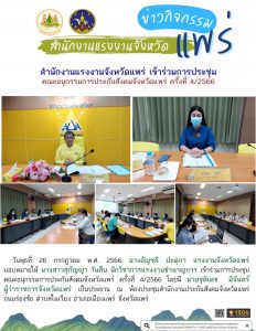 สรจ.แพร่ เข้าร่วมการประชุมคณะอนุกรรมการประกันสังคมจังหวัดแพร่ ครั้งที่ 4/2566