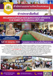 สรจ.นครพนม เข้าร่วมการประชุมคณะกรรมการโครงการ TO BE NUMBER ONE จังหวัดนครพนม ครั้งที่ 1/2566