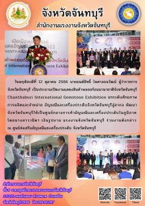สรจ.จันทบุรี ร่วมงานเปิดงานแสดงสินค้าพลอยก้อนนานาชาติจังหวัดจันทบุรี ยกระดับศักยภาพ การผลิตและจำหน่าย อัญมณีและเครื่องประดับจังหวัดจันทบุรีสู่สากล