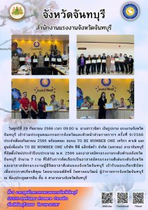 นายมนต์สิทธิ์ ไพศาลธนวัฒน์ ผู้ว่าราชการจังหวัดจันทบุรี มอบเกียรติบัตรเพื่อประกาศเกียรติคุณ ชมรม TO BE NUMBER ONE เทวิกา คาเฟ่