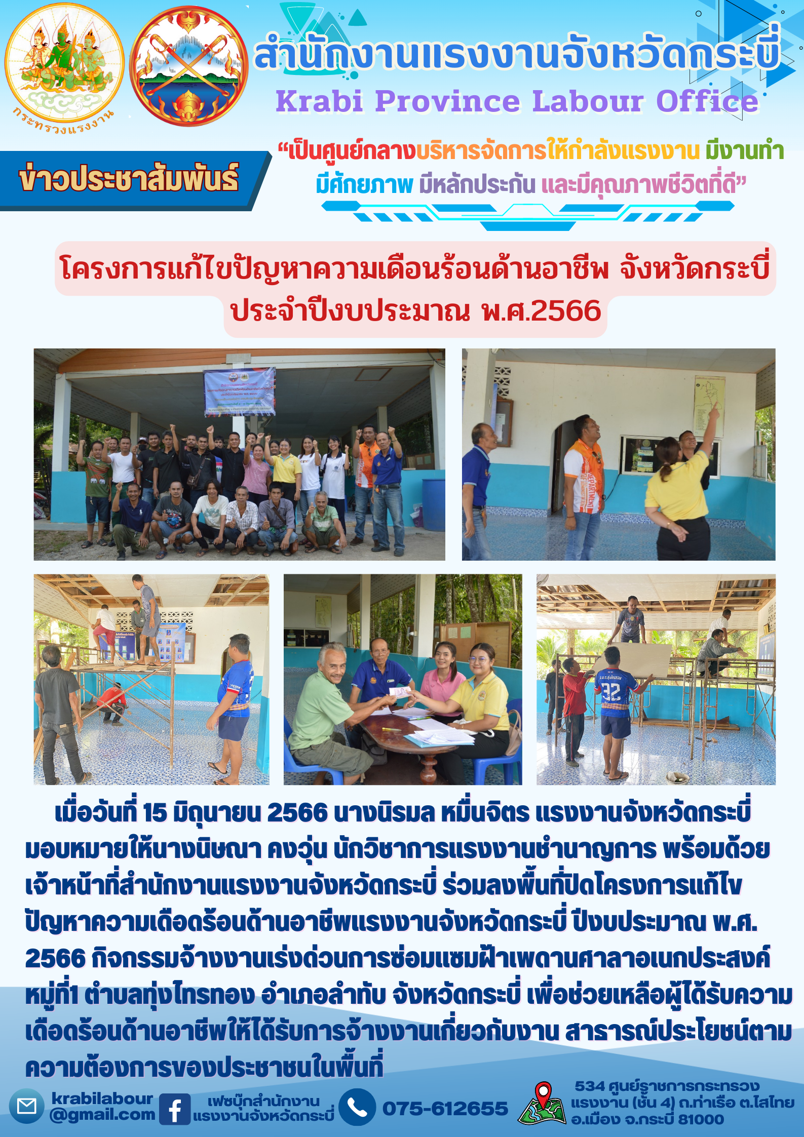 สรจ.กระบี่ โครงการแก้ไขปัญหาความเดือดร้อนด้านอาชีพ ประจำปีงบประประมาณ พ.ศ.2566