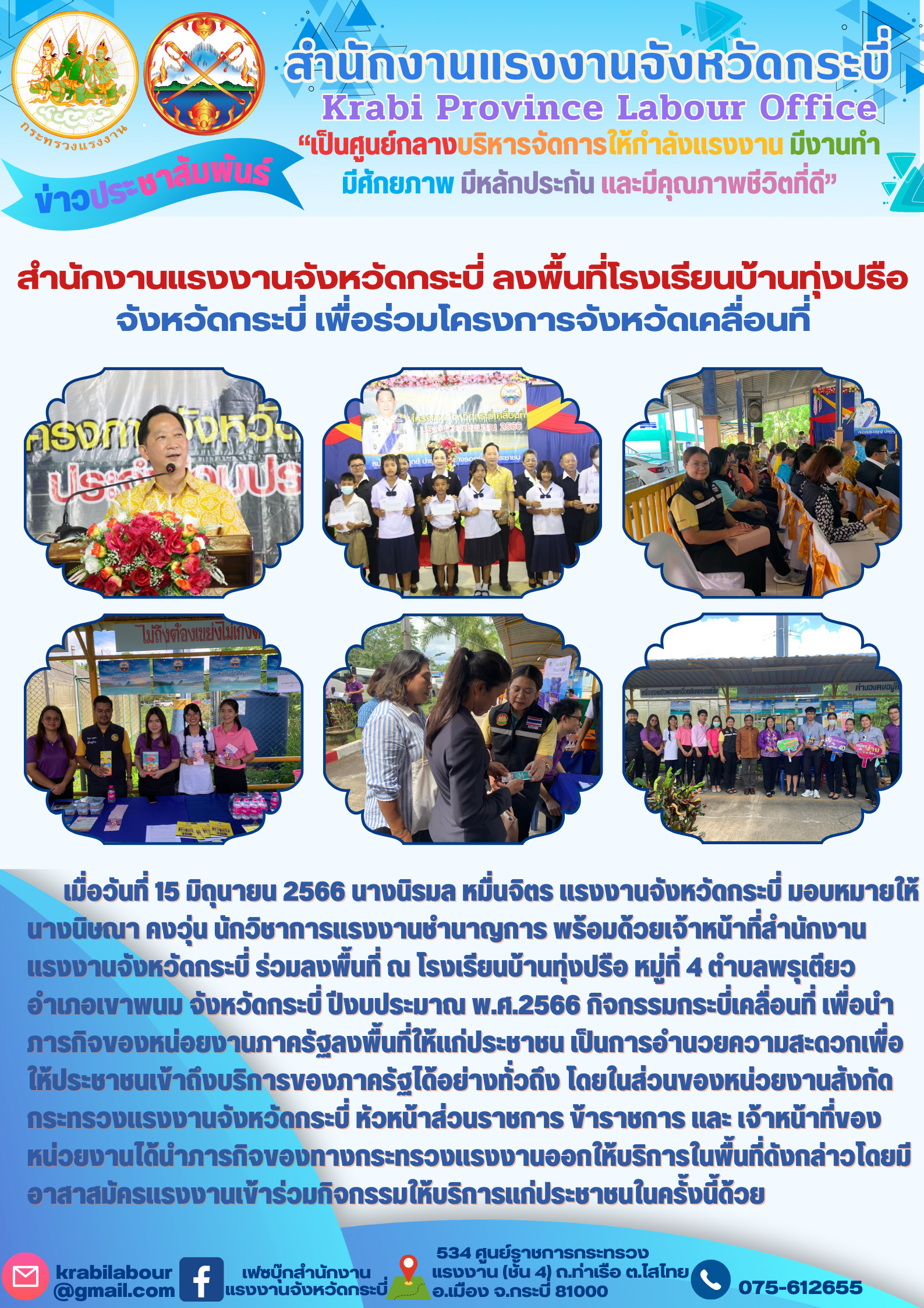 สรจ.กระบี่ ลงพื้นที่โรงเรียนบ้านทุ่งปรือ จังหวัดกระบี่ เพื่อร่วมโครงการจังหวัดเคลื่อนที่