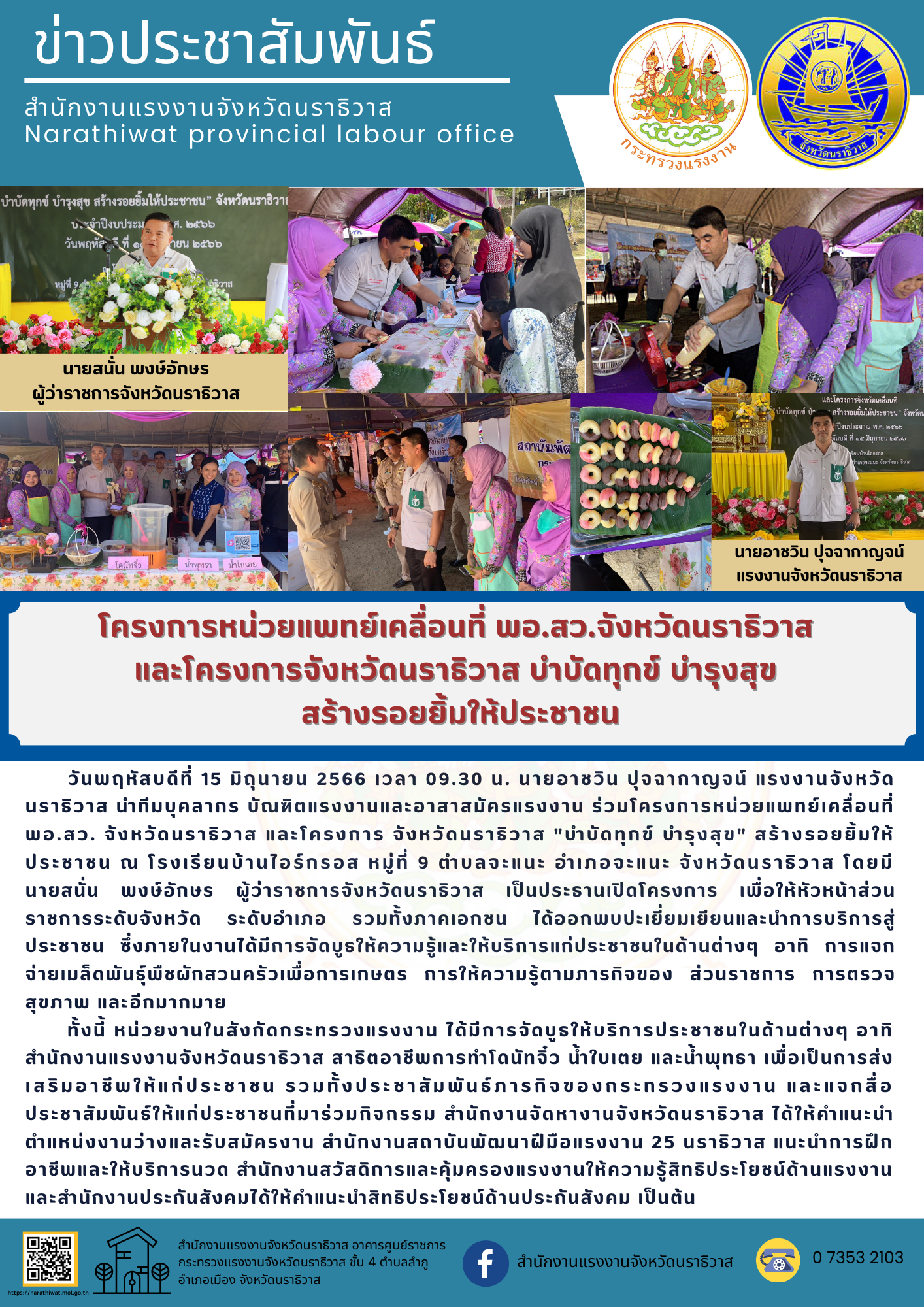 สรจ.นราธิวาส โครงการหน่วยแพทย์เคลื่อนที่ พอ.สว.จังหวัดนราธิวาส และโครงการจังหวัดนราธิวาส บำบัดทุกข์ บำรุงสุข สร้างรอยยิ้มให้ประชาชน