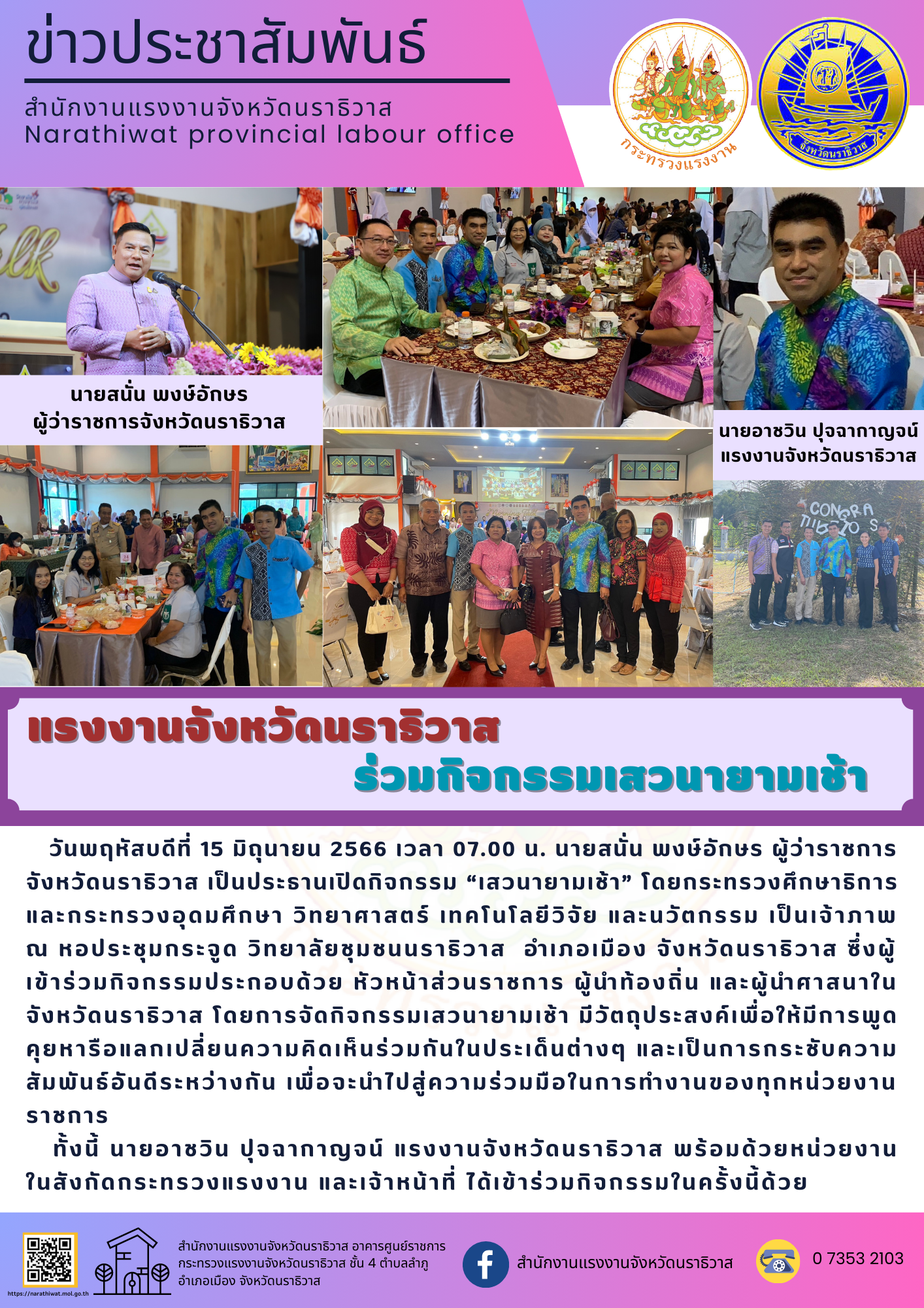 สำนักงานแรงงานจังหวัดนราธิวาส ร่วมกิจกรรมเสวนายามเช้า