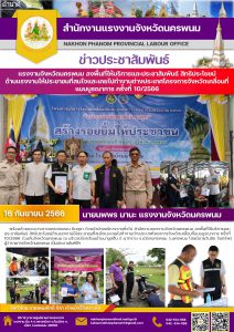 สรจ.นครพนม ลงพื้นที่ให้บริการและประชาสัมพันธ์ สิทธิประโยชน์ด้านแรงงานให้ประชาชนที่สนใจและเคยไปทำงานต่างประเทศโครงการจังหวัดเคลื่อนที่แบบบูรณาการ ครั้งที่ 10/2566