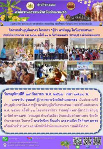 สรจ.กำแพงเพชร ร่วมกิจกรรมทำบุญตักบาตร โครงการ “ผู้ว่า พาทำบุญ ในวันธรรมสวนะ” ประจำปีงบประมาณ พ.ศ.2566 ครั้งที่ 11 ณ วัดกำแพงเพชร (ธรรมยุต) อ.เมืองกำแพงเพชร
