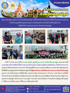 สรจ.นครปฐม บูรณาการกับหน่วยงานที่เกี่ยวข้องออกตรวจป้องกันและปราบปรามการค้ามนุษย์ด้านแรงงานและกวดขันแรงงานต่างด้าวผิดกฎหมาย ในพื้นที่อำเภอพุทธมณฑล จังหวัดนครปฐม