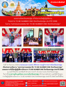สรจ.นครปฐม เข้ารับรางวัลผู้ปฏิบัติงานโครงการ TO BE NUMBER ONE จังหวัดนครปฐม ประจำปี 2566 ในงาน “มหกรรมรวมพลสมาชิก TO BE NUMBER ONE จังหวัดนครปฐม”