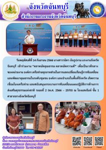 สรจ.จันทบุรี เข้าร่วมงาน“ตลาดนัดคุณธรรม ตลาดนัดความดี” เพื่อเป็นเวทีกลางของหน่วยงาน องค์กร เครือข่ายทุกภาคส่วนในการแลกเปลี่ยนเรียนรู้การขับเคลื่อนและพัฒนาคุณธรรมในระดับชุมชน องค์กร และอำเภอในพื้นที่จังหวัด