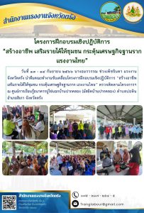 สรจ.ตรัง คณะทำงานขับเคลื่อนโครงการฝึกอบรมเชิงปฏิบัติการ “สร้างอาชีพ เสริมรายได้ให้ชุมชน กระตุ้นเศรษฐกิจฐานราก แรงงานไทย” ตรวจติดตามโครงการฯ
