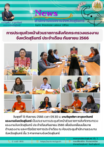 การประชุมหัวหน้าส่วนราชการสังกัดกระทรวงแรงงานจังหวัดสุรินทร์ ประจำเดือน กันยายน 2566