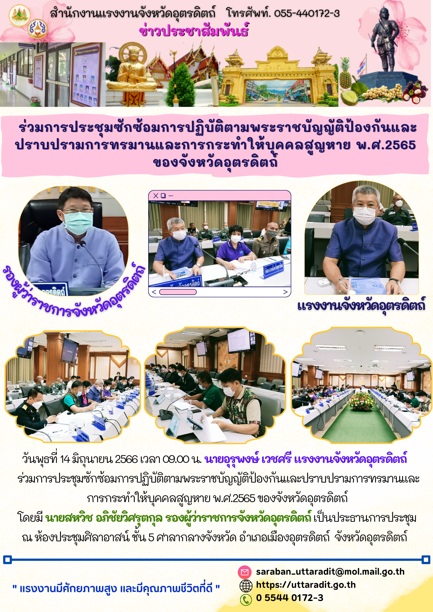 สรจ.อต. ร่วมการประชุมซักซ้อมการปฏิบัติตามพระราชบัญญัติป้องกันและปราบปรามการทรมานและการกระทำให้บุคคลสูญหาย พ.ศ.2565 ของจังหวัดอุตรดิตถ์