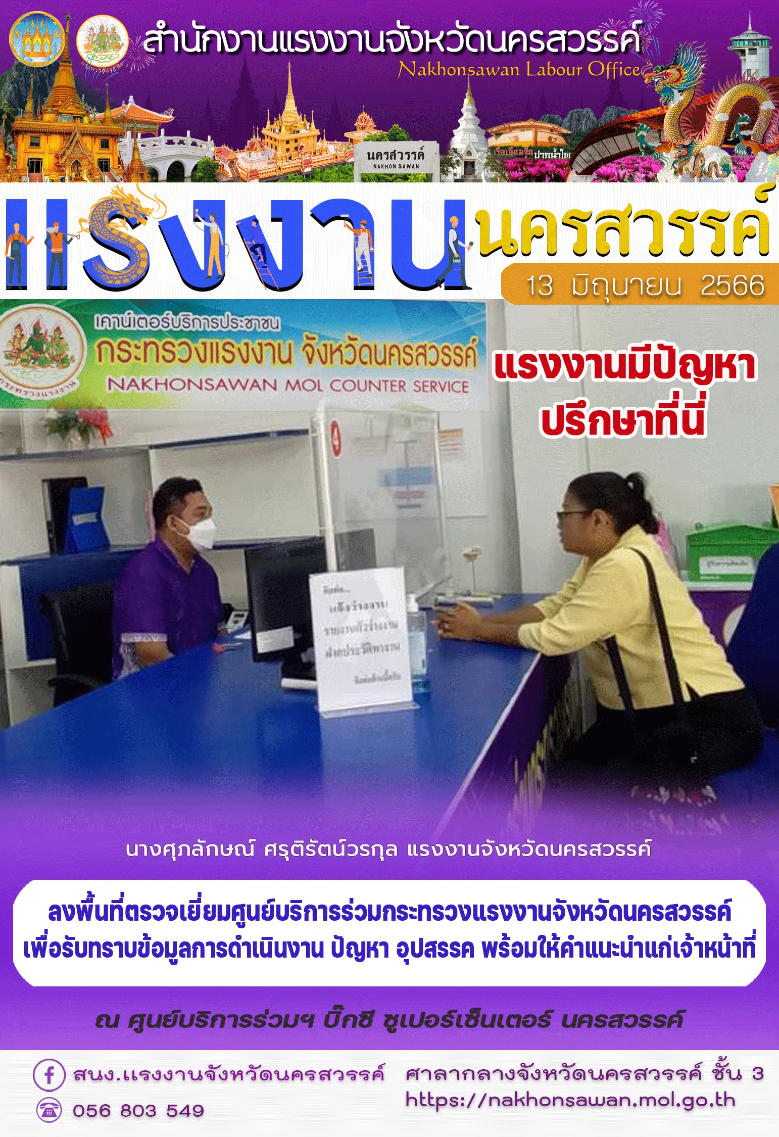 สรจ.นครสวรรค์ ลงพื้นที่ตรวจเยี่ยมศูนย์บริการร่วมกระทรวงแรงงานจังหวัดนครสวรรค์ เพื่อรับทราบข้อมูลการดำเนินงาน ปัญหา อุปสรรค พร้อมให้คำแนะนำแก่เจ้าหน้าที่ ณ ศูนย์บริการร่วมฯ บิ๊กซี ซูเปอร์เซ็นเตอร์ นครสวรรค์