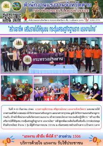 สรจ.กระบี่ ลงพื้นที่รณรงค์ส่งเสริมความเข้มแข็งของชมรม TO BE NUMBER ONE ในสถานประกอบการ