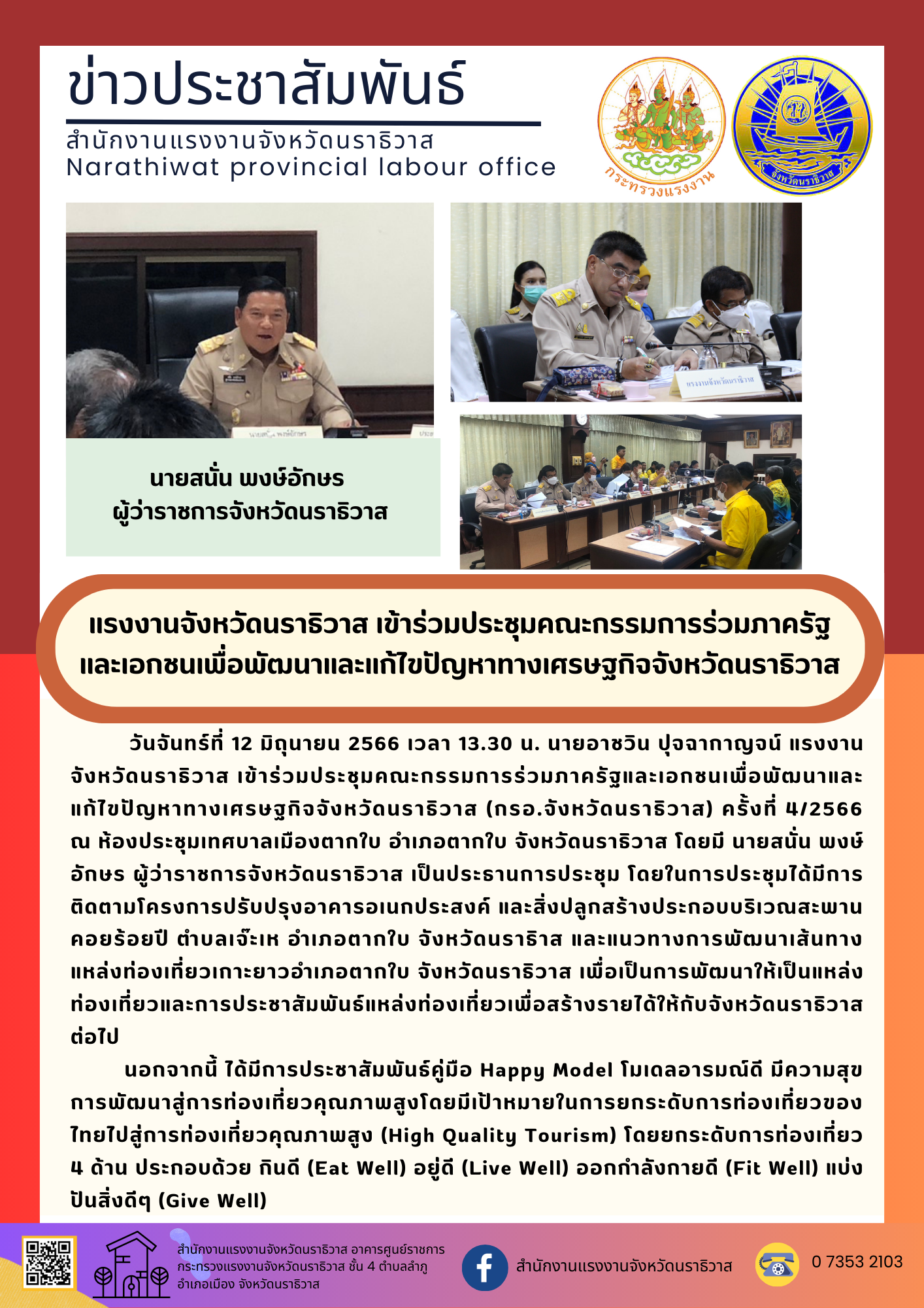 สรจ.นราธิวาส เข้าร่วมประชุมคณะกรรมการร่วมภาครัฐและเอกชนเพื่อพัฒนาและแก้ไขปัญหาทางเศรษฐกิจจังหวัดนราธิวาส