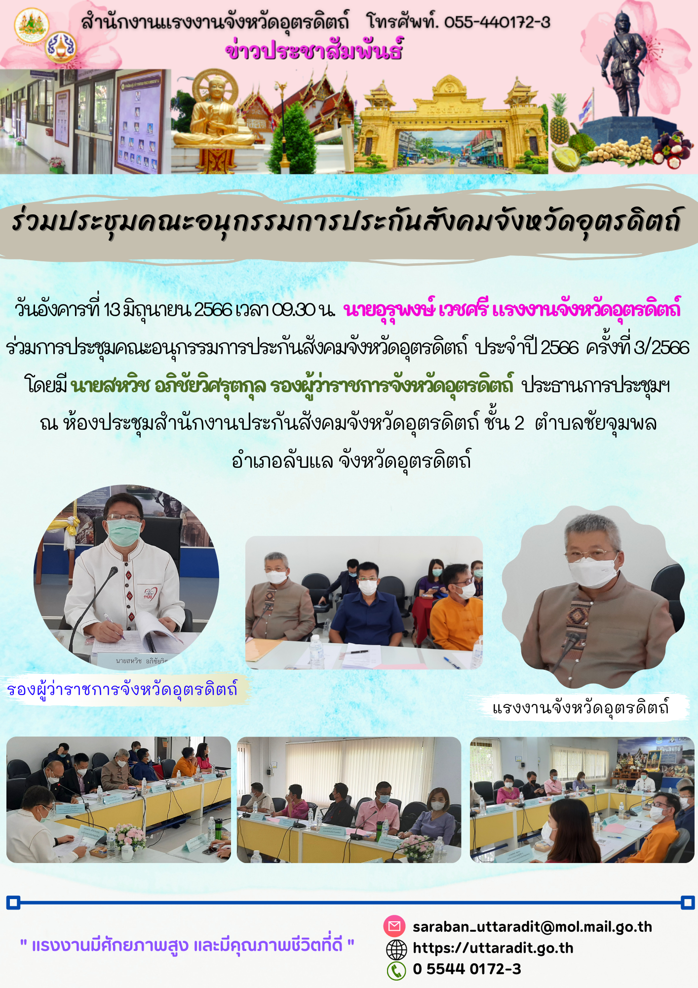 สรจ.อต. ร่วมประชุมคณะอนุกรรมการประกันสังคมจังหวัดอุตรดิตถ์ ครั้งที่ 3/2566