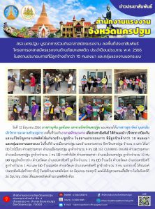 สรจ.นครปฐม บูรณาการร่วมกับอาสาสมัครแรงงาน ลงพื้นที่ประชาสัมพันธ์โครงการอาสาสมัครแรงงานต้านภัยยาเสพติด ประจำปีงบประมาณ พ.ศ. 2566 ในสถานประกอบการที่มีลูกจ้างต่ำกว่า 10 คนลงมา และกลุ่มแรงงานนอกระบบ