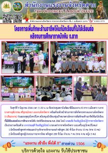 สรจ.ตาก โครงการเพิ่มทักษะด้านอาชีพให้แก่นักเรียนที่ไม่ได้เรียนต่อหลังจบการศึกษาภาคบังคับ