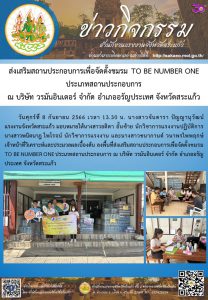 สรจ.สระแก้ว ลงพื้นที่ส่งเสริมสถานประกอบการเพื่อจัดตั้งชมรม TO BE NUMBER ONE ประเภทสถานประกอบการ ณ บริษัท วรมันอินเตอร์ จำกัด อำเภออรัญประเทศ จังหวัดสระแก้ว