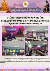สรจ.พิษณุโลก จัดประชุมเชิงปฏิบัติการคณะทำงานทบทวนและจัดทำแผนปฏิบัติการด้านแรงงานจังหวัดพิษณุโลก