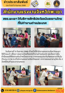 สรจ.พะเยา ให้บริการติดตามสิทธิประโยชน์แรงงานไทยที่ไปทำงานต่างประเทศ