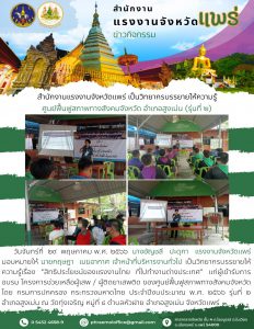 สำนักงานแรงงานจังหวัดแพร่ เป็นวิทยากรบรรยายให้ความรู้ศูนย์ฟื้นฟูสภาพทางสังคมจังหวัด อำเภอสูงเม่น (รุ่นที่ ๒)