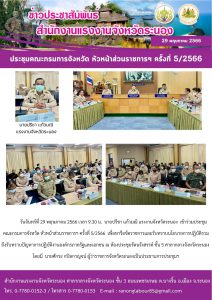 สำนักงานแรงงานจังหวัดระยอง จัดการประชุมหัวหน้าส่วนราชการ สังกัดกระทรวงแรงงานจังหวัดระยอง ครั้งที่ 5/2566