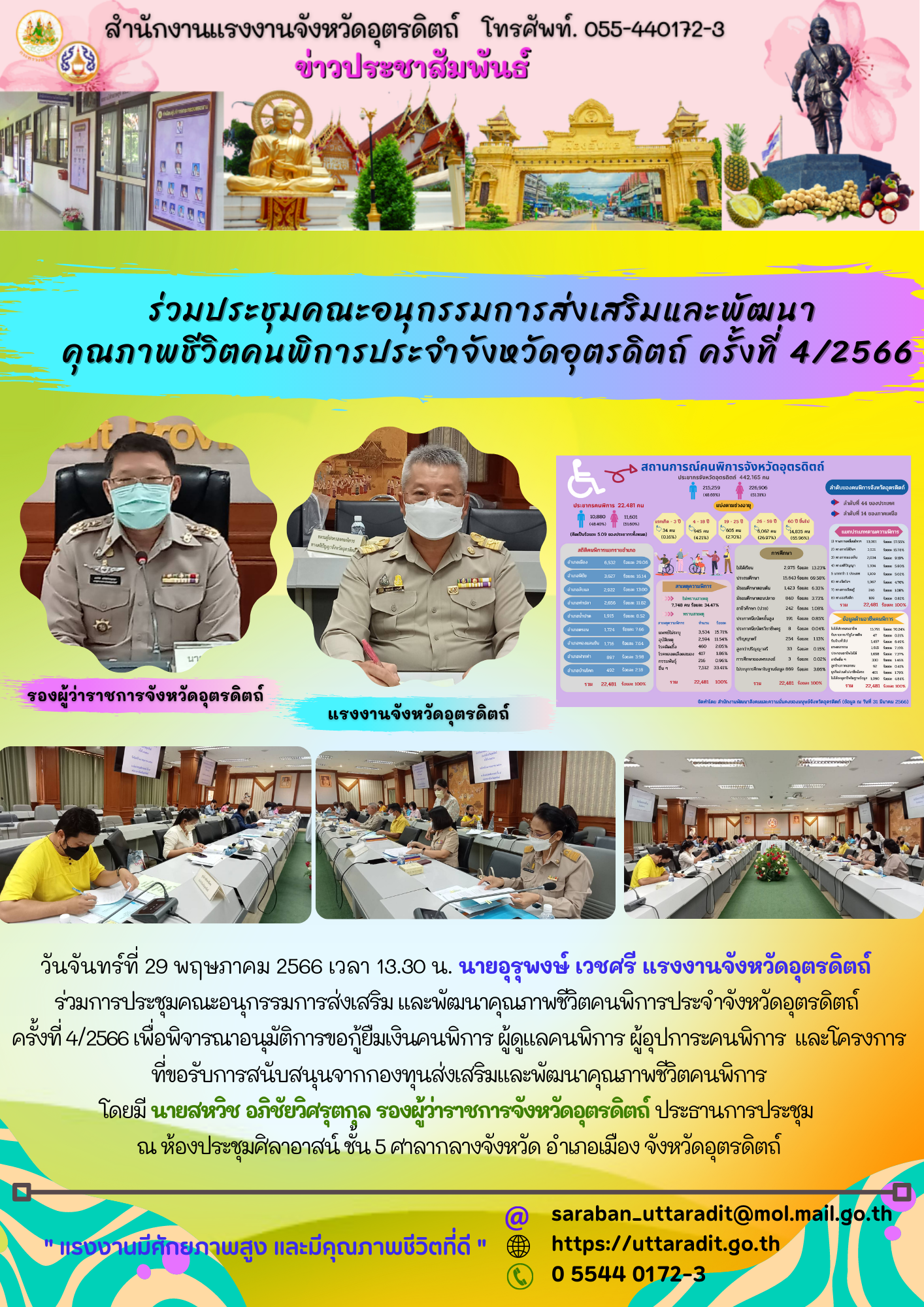 สรจ.อต.ร่วมประชุมคณะอนุกรรมการส่งเสริมและพัฒนาคุณภาพชีวิตคนพิการประจำจังหวัดอุตรดิตถ์ ครั้งที่ 4/2566