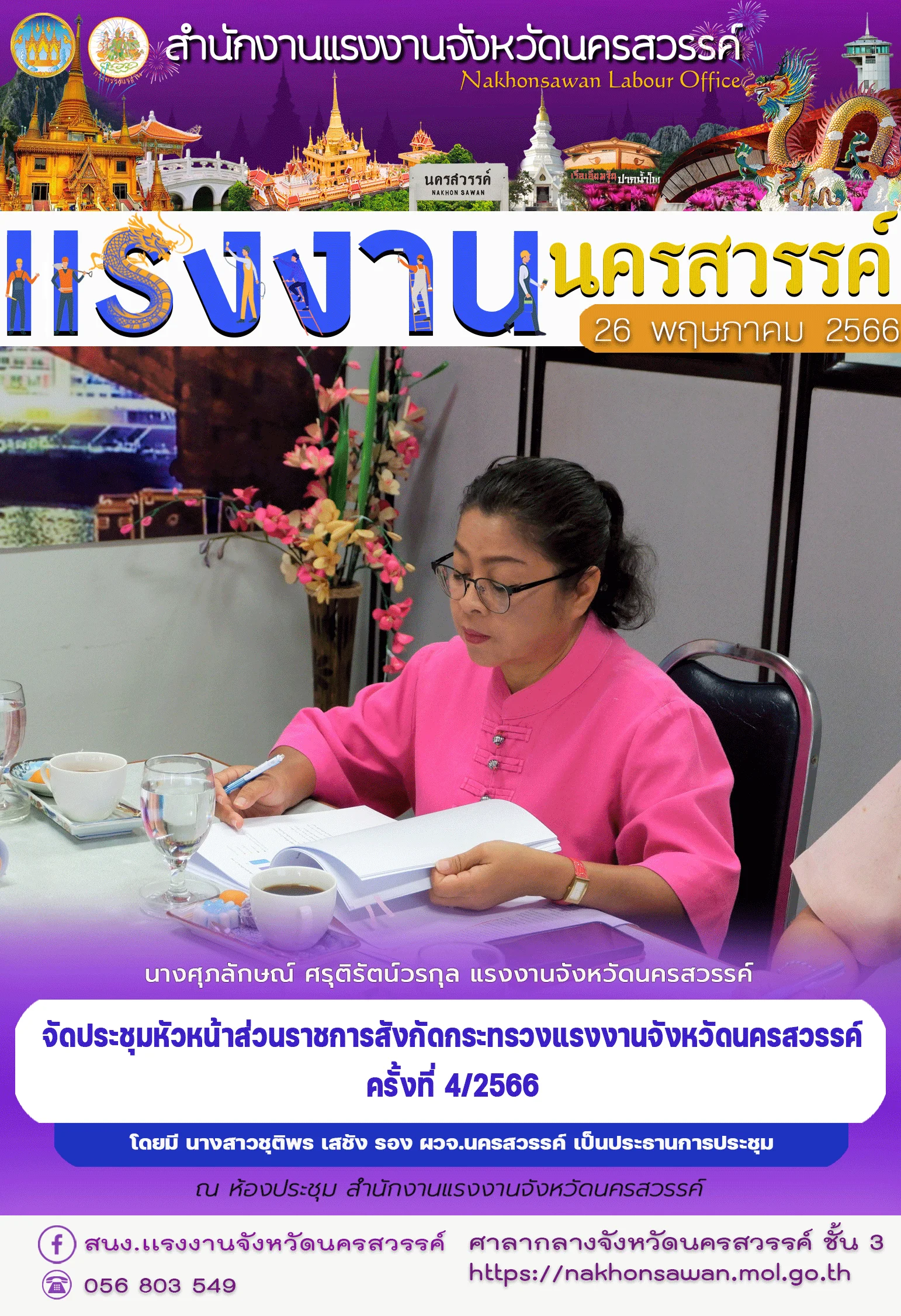 สรจ.นครสวรรค์ จัดประชุมหัวหน้าส่วนราชการสังกัดกระทรวงแรงงานจังหวัดนครสวรรค์ ครั้งที่ 4/2566