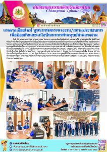 แรงงานจังหวัดเชียงใหม่ บูรณาการตรวจแรงงาน สถานประกอบการ เพื่อป้องกันและแก้ไขปัญหาการค้ามนุษย์ด้านแรงงาน