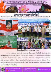 สำนักงานแรงงานจังหวัดอุบลราชธานี ร่วมออก (พอ.สว.) หน่วยบริการจังหวัดเคลื่อนที่