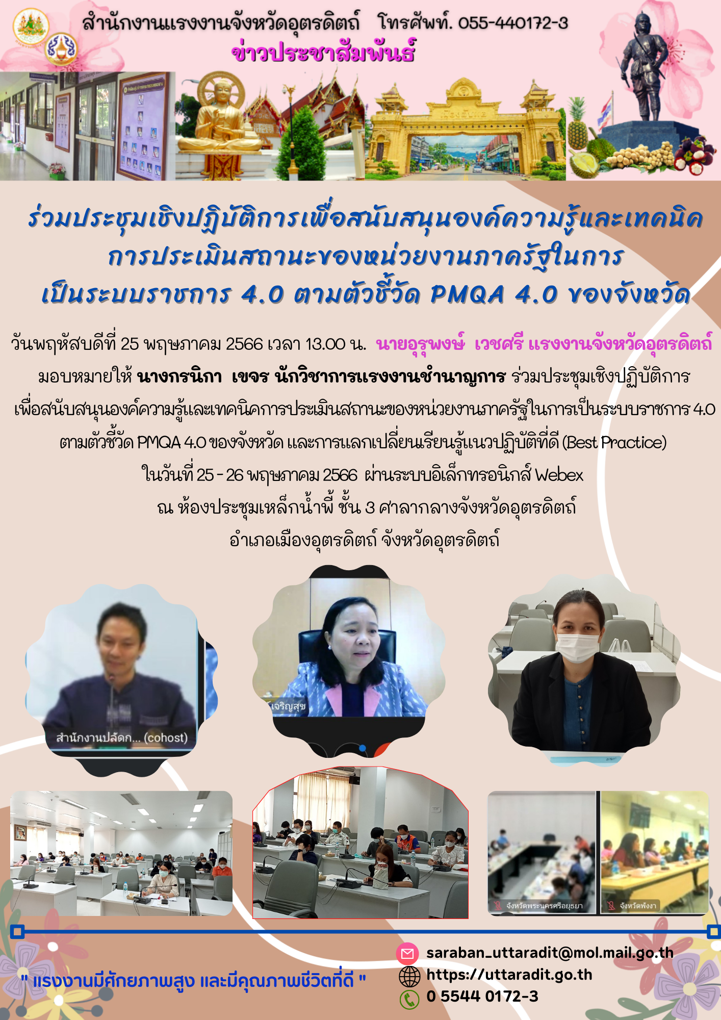สรจ.อต. ร่วมประชุมเชิงปฏิบัติการเพื่อสนับสนุนองค์ความรู้และเทคนิคการประเมินสถานะของหน่วยงานภาครัฐในการเป็นระบบราชการ 4.0 ตามตัวชี้วัด PMQA 4.0 ของจังหวัด