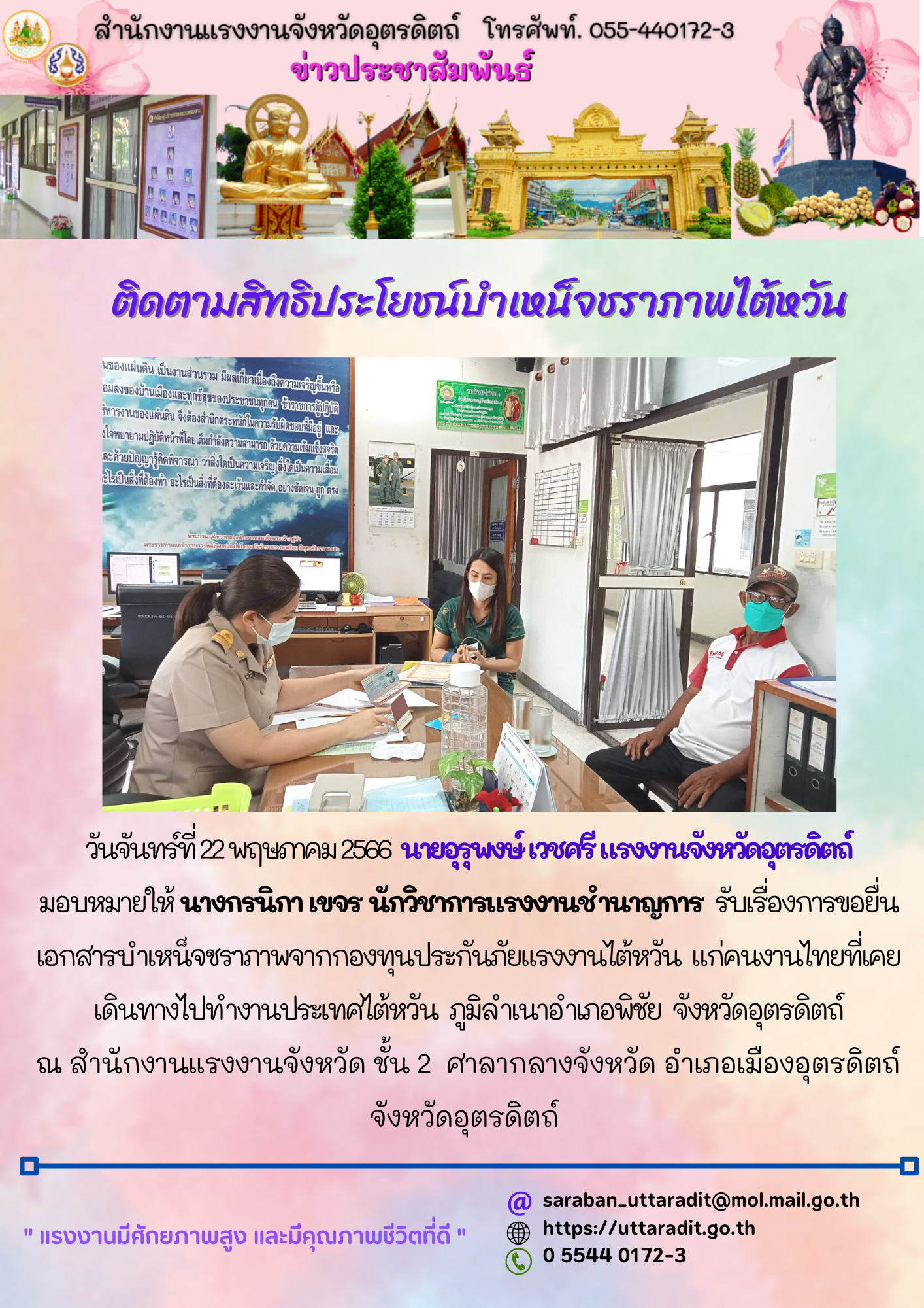 สรจ.อต. รับเรื่องการขอยื่นเอกสารบำเหน็จชราภาพจากกองทุนประกันภัยแรงงานไต้หวัน