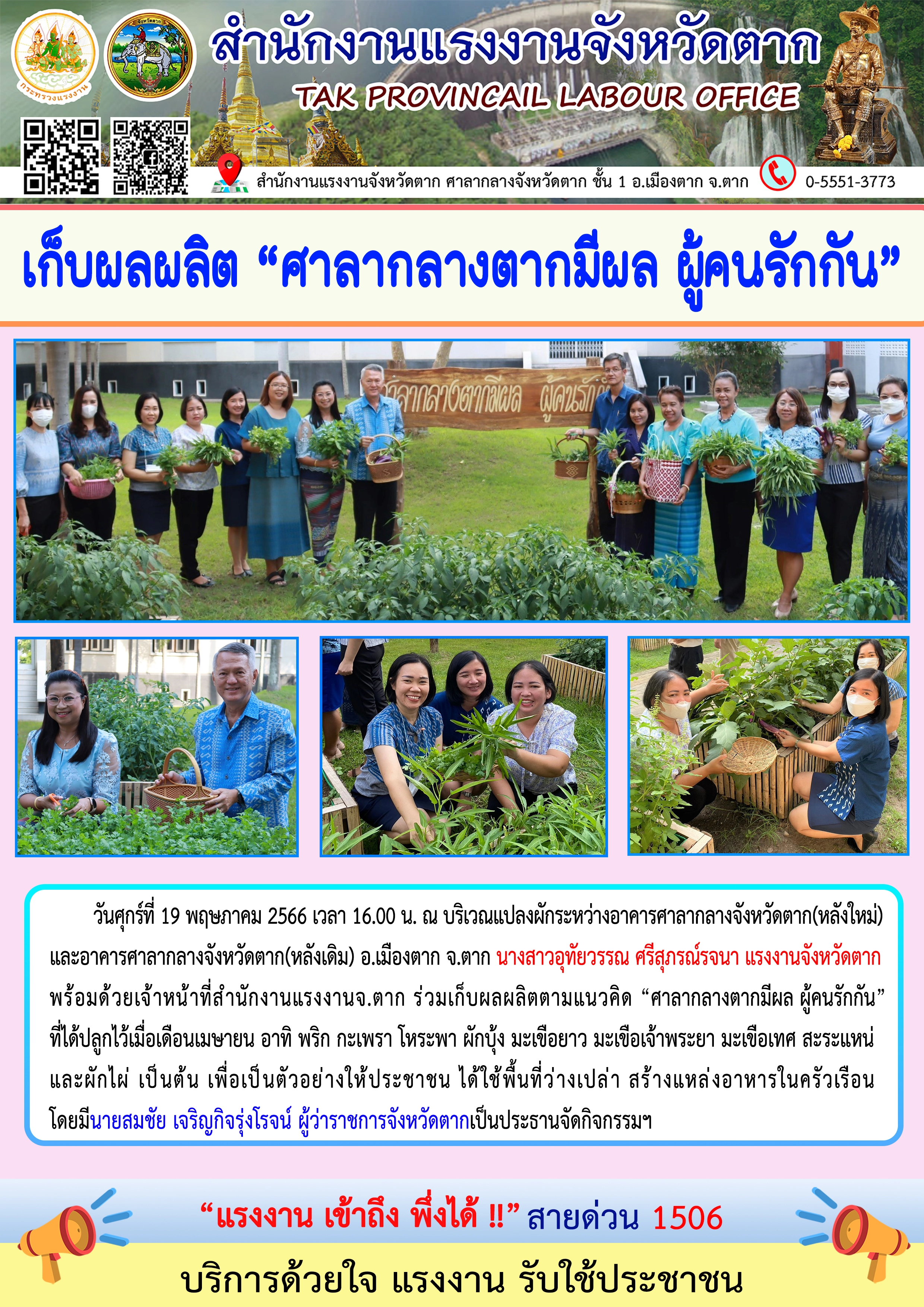 สรจ.ตาก เก็บผลผลิต “ศาลากลางตากมีผล ผู้คนรักกัน”