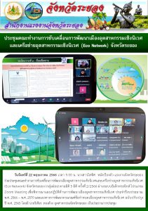 สรจ.ระยอง ร่วมประชุมคณะทำงานการขับเคลื่อนการพัฒนาเมืองอุตสาหกรรมเชิงนิเวศและเครือข่ายอุตสาหกรรมเชิงนิเวศ (Eco Network) จังหวัดระยอง (กลุ่มย่อย) ตามมิติ 5 มิติ ครั้งที่ 2/2566
