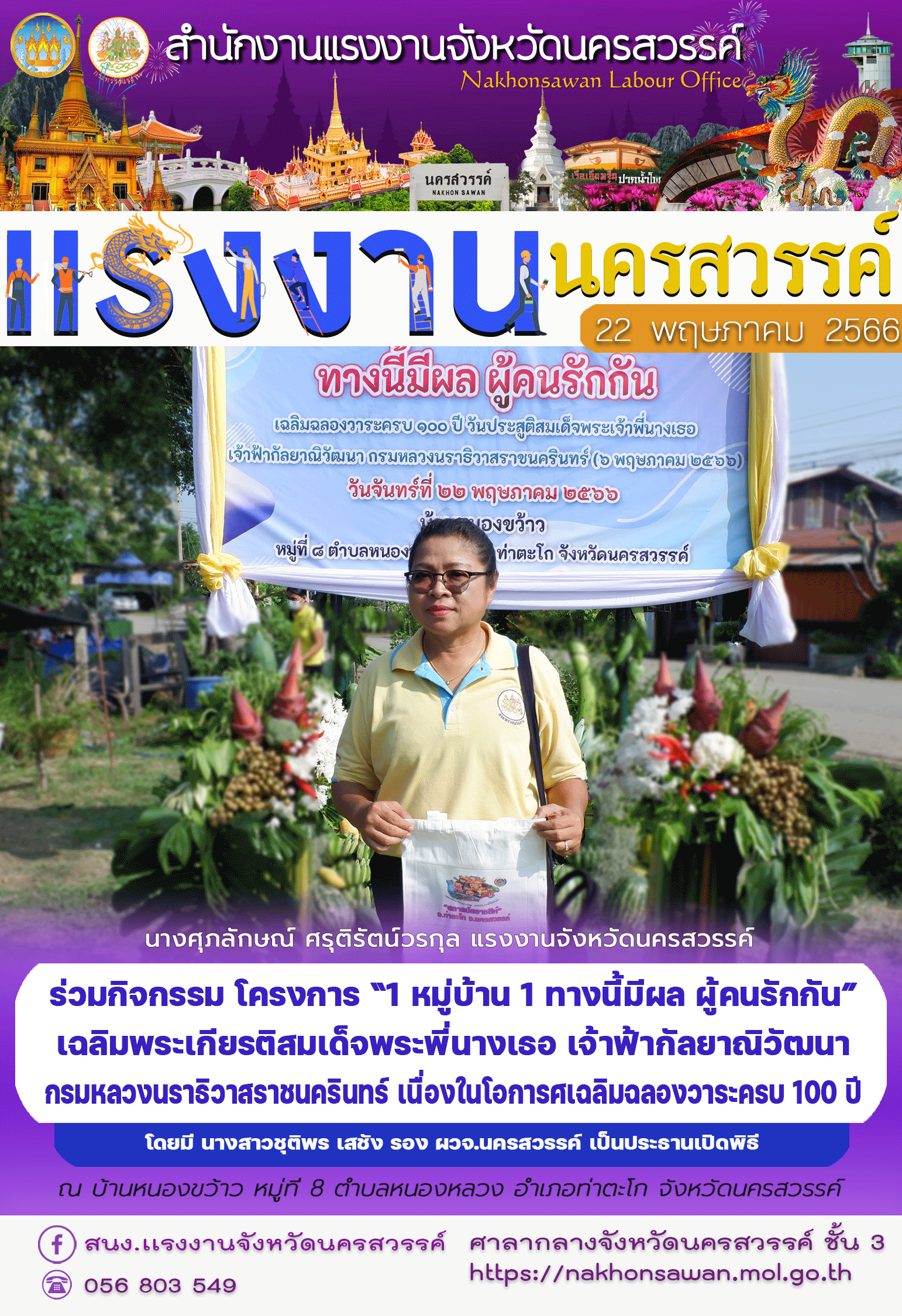 สรจ.นครสวรรค์ ร่วมกิจกรรม โครงการ “1 หมู่บ้าน 1 ทางนี้มีผล ผู้คนรักกัน” เฉลิมพระเกียรติสมเด็จพระพี่นางเธอ เจ้าฟ้ากัลยาณิวัฒนา กรมหลวงนราธิวาสราชนครินทร์ เนื่องในโอการศเฉลิมฉลองวาระครบ 100 ปี