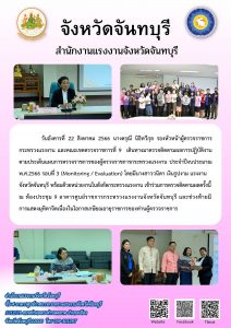 สรจ.จันทบุรี เข้าร่วมติดตามผลการปฏิบัติงานตามประเด็นแผนการตรวจราชการของผู้ตรวจราชการกระทรวงแรงงาน ประจำปีงบประมาณ พ.ศ.2566 รอบที่ 3 (Monitoring / Evaluation)
