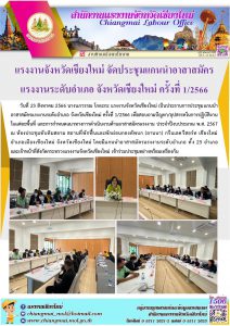 สรจ.เชียงใหม่ จัดประชุมแกนนำอาสาสมัครแรงงานระดับอำเภอ จังหวัดเชียงใหม่ ครั้งที่ 1/2566