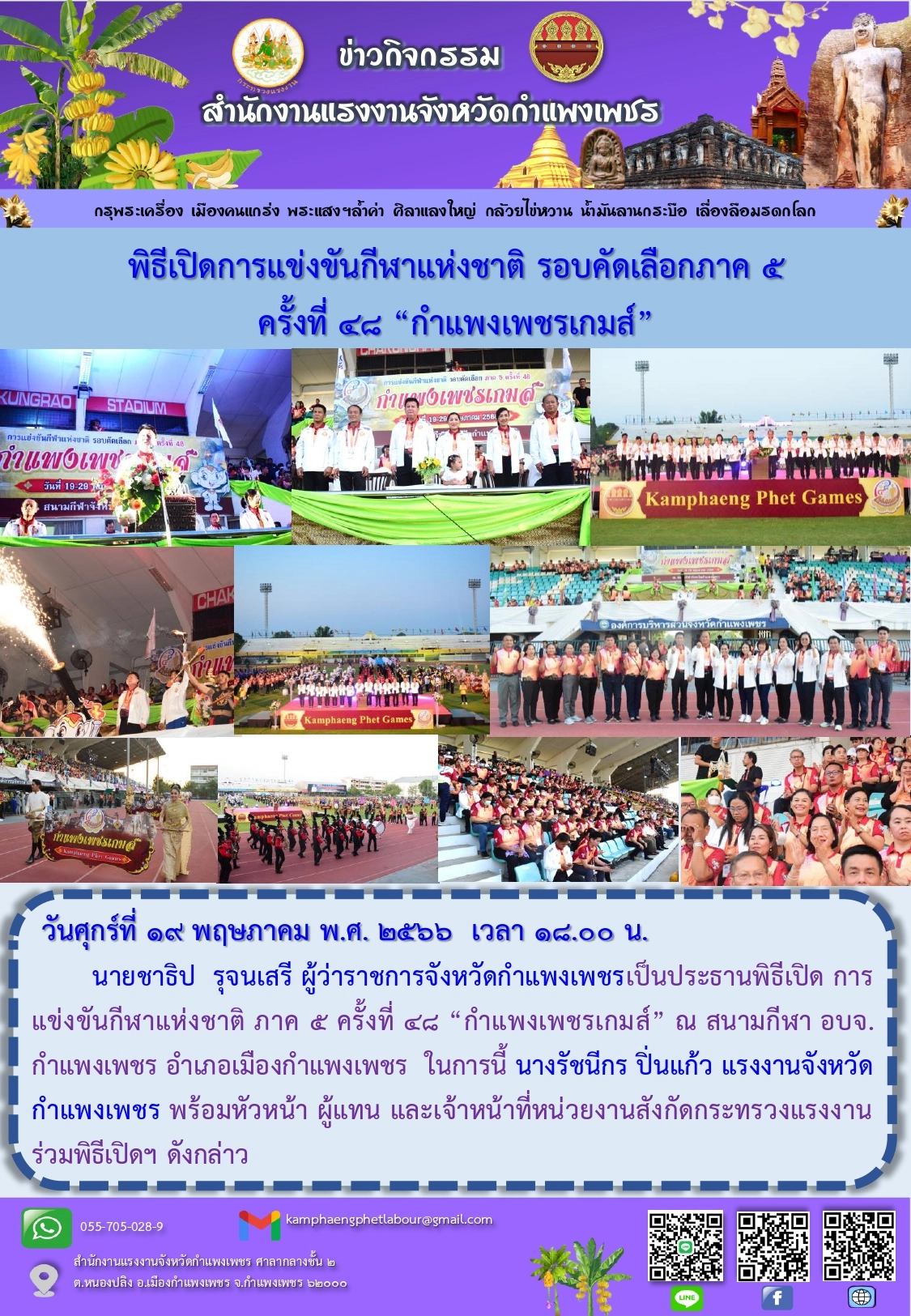 พิธีเปิดการแข่งขันกีฬาแห่งชาติ รอบคัดเลือกภาค 5 ครั้งที่ 48 “กำแพงเพชรเกมส์”