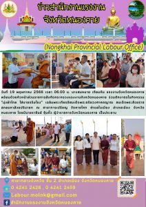 แรงงานจังหวัดหนองคาย ร่วมตักบาตรในกิจกรรม “นุ่งผ้าไทย ใส่บาตรริมโขง”