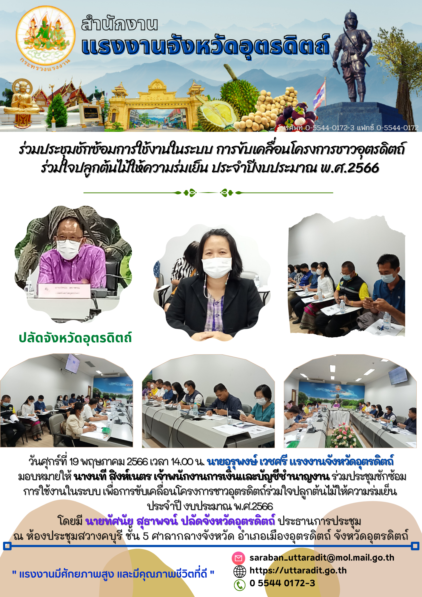 สรจ.อต. ร่วมประชุมชักซ้อมการใช้งานในระบบ การขับเคลื่อนโครงการชาวอุตรดิตถ์ร่วมใจปลูกต้นไม้ให้ความร่มเย็น ประจำปีงบประมาณ พ.ศ.2566