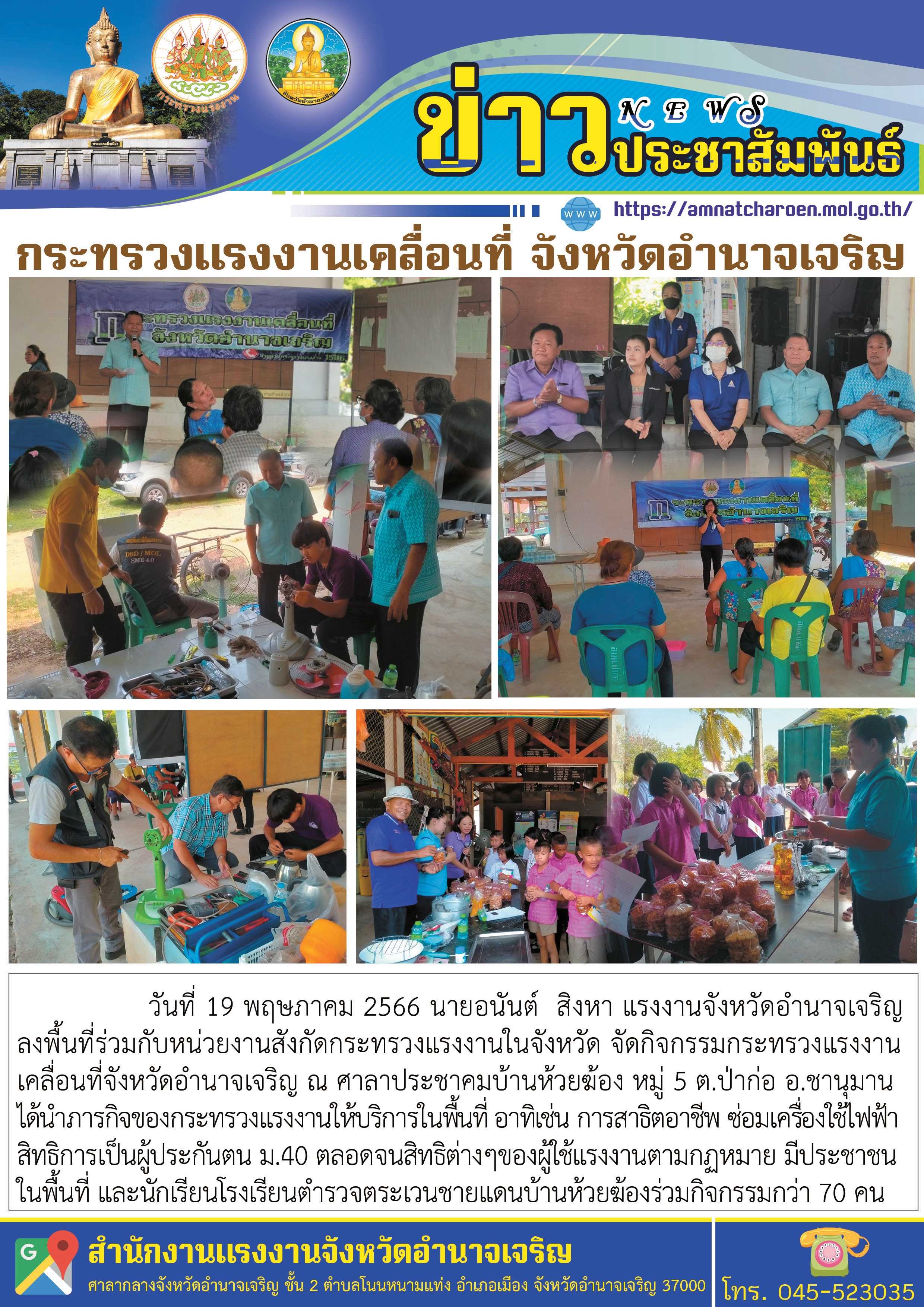 สรจ.อำนาจเสริญ 5 เสือ กระทรวงแรงงาน จัดกิจกรรมกระทรวงแรงงานเคลื่อนที่ จังหวัดอำนาจเจริญ