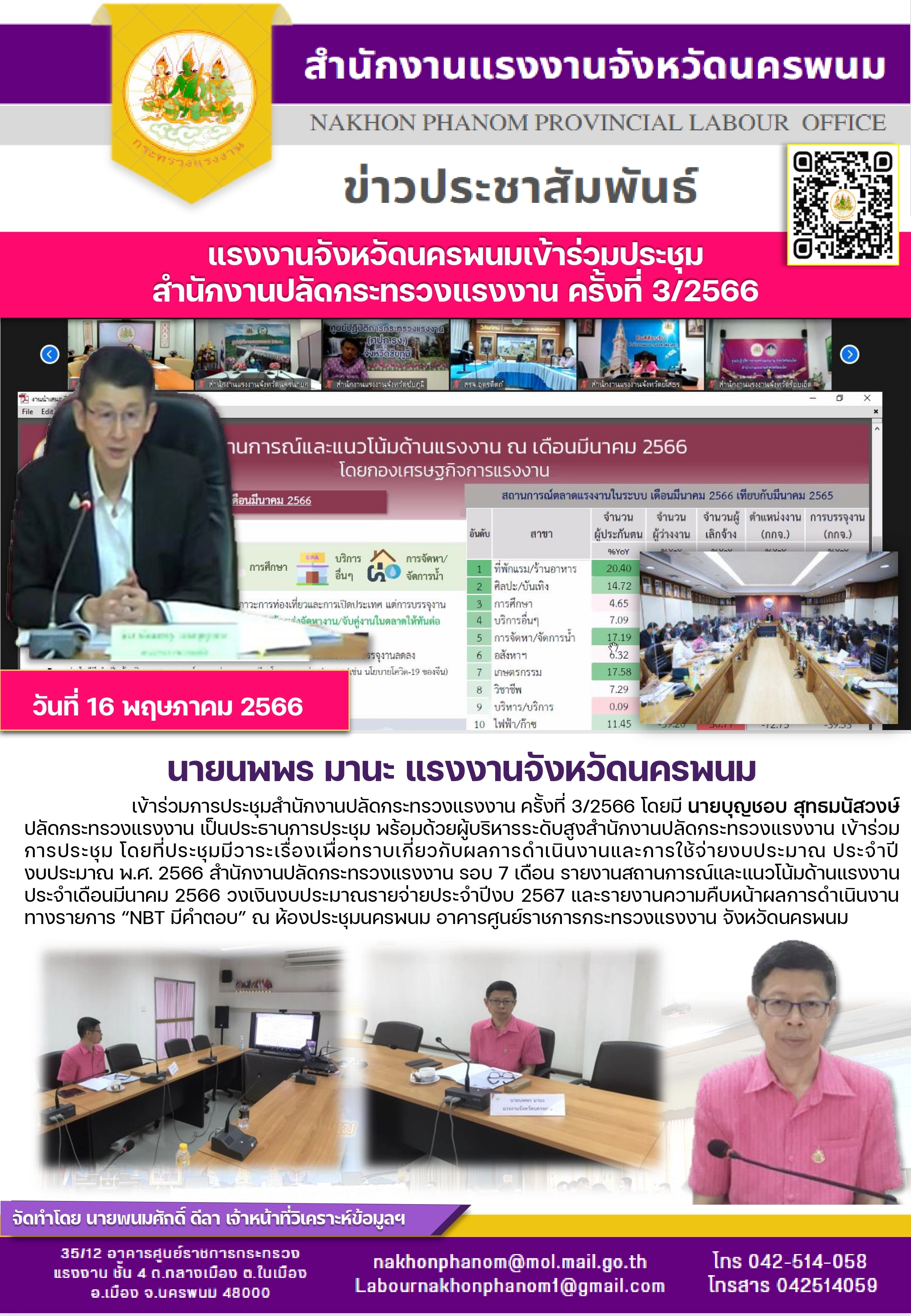 สรจ.นครพนม เข้าร่วมการประชุมสำนักงานปลัดกระทรวงแรงงาน ครั้งที่ 3/2566